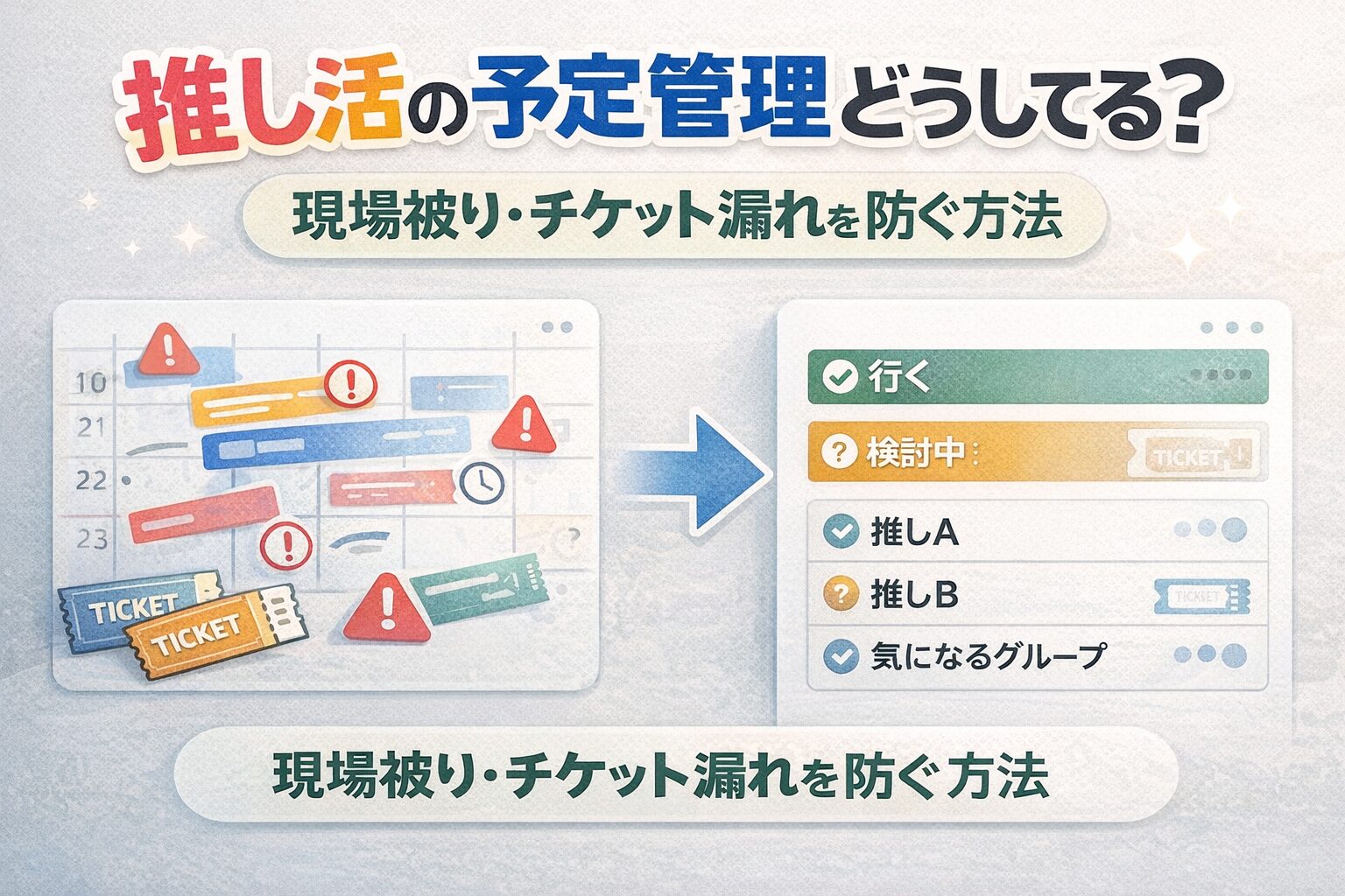 推し活の予定管理どうしてる?現場被り・チケット漏れを防ぐ方法【オタク向け】